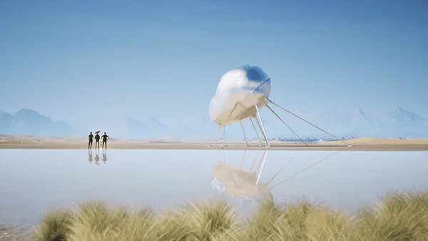 The object is not static. As part of the environment, it will be moving and transforming as a consequence of the natural conditions to which it is exposed. This will modify the way in which people perceive it. The superior “cloud” of the object, will have some movement. It will expand and contract as its internal temperature changes. This movement, will give the idea the object is alive and constantly breathing. Just like a living organism that produces and consumes energy.