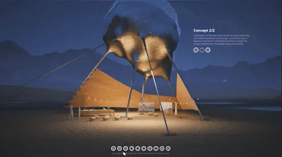 SECONDARY BOUNCE developed an interactive application for architectural project visualization, offering an innovative and immersive experience. The application allows users to explore the project through different cameras, each functioning as an “interactive page” that combines technical and material information with scenes showcasing how architectural elements are used in context. Additionally, it provides various interactive features, such as adjusting the time of day, changing weather conditions (clear skies, rain, or snow), and disassembling architectural elements to reveal their internal structure.