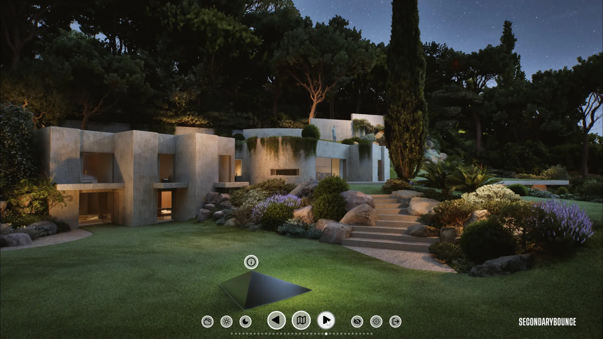 The tool is conceived as a design laboratory. Materials, lighting, vegetation, spatial relationships, and architectural interventions can be changed as part of an open process rather than a closed outcome.
