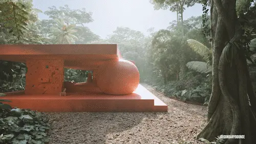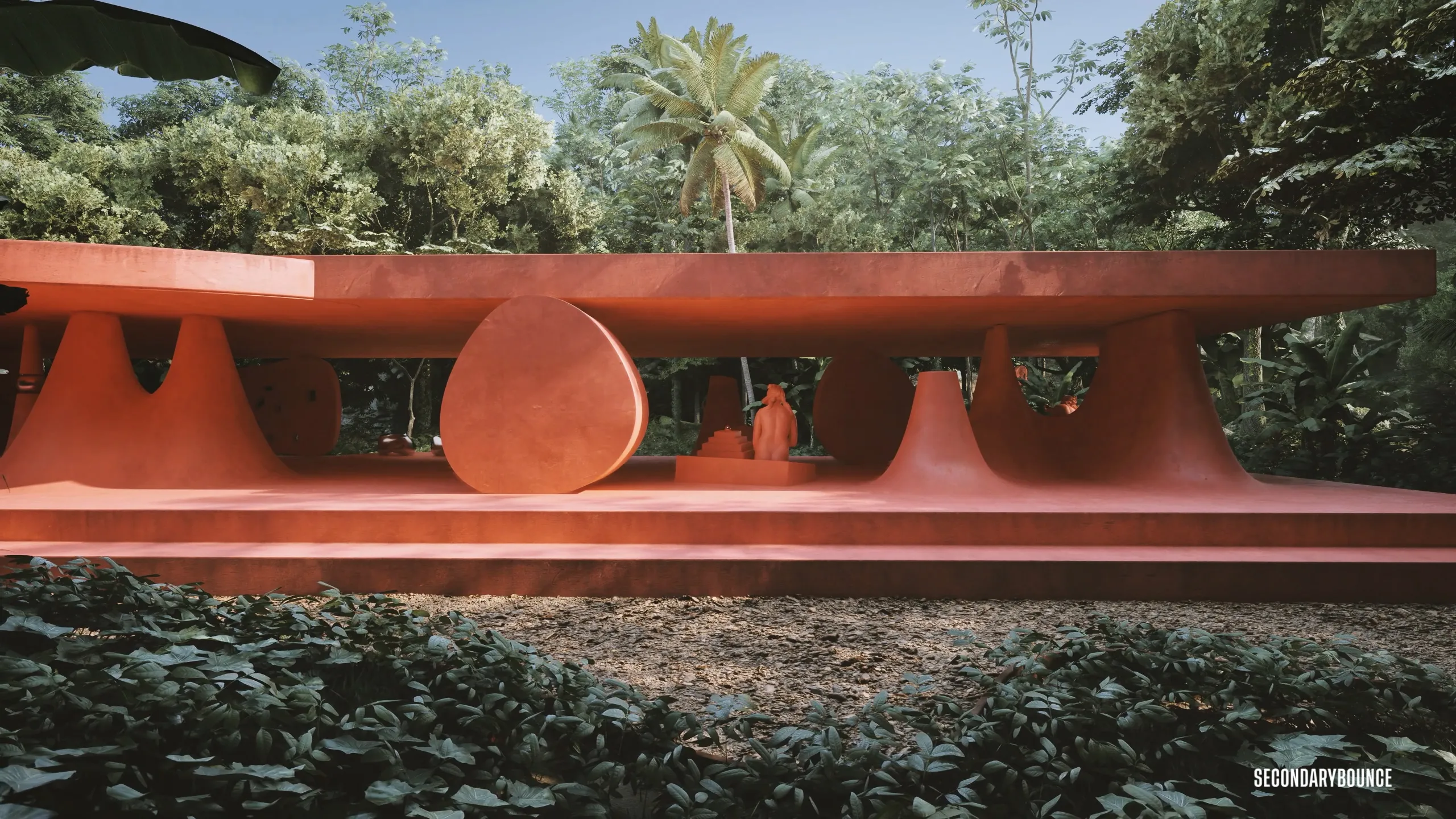 Architectural, sculptural, and landscape elements coexist within a single digital body.