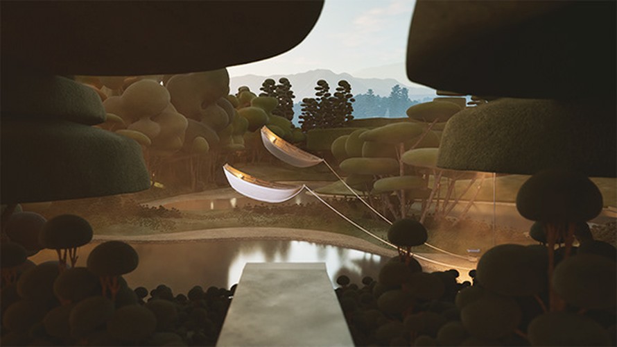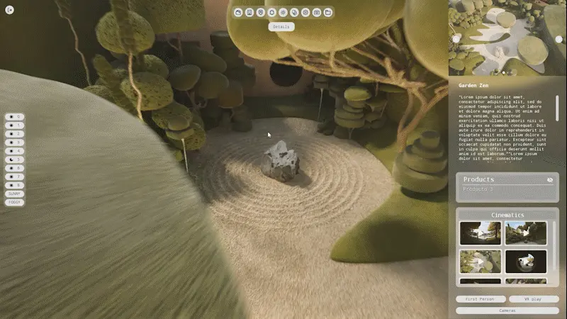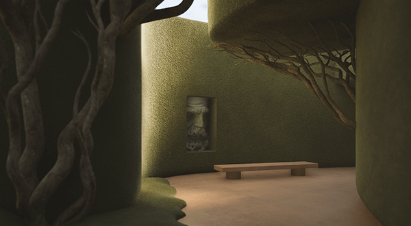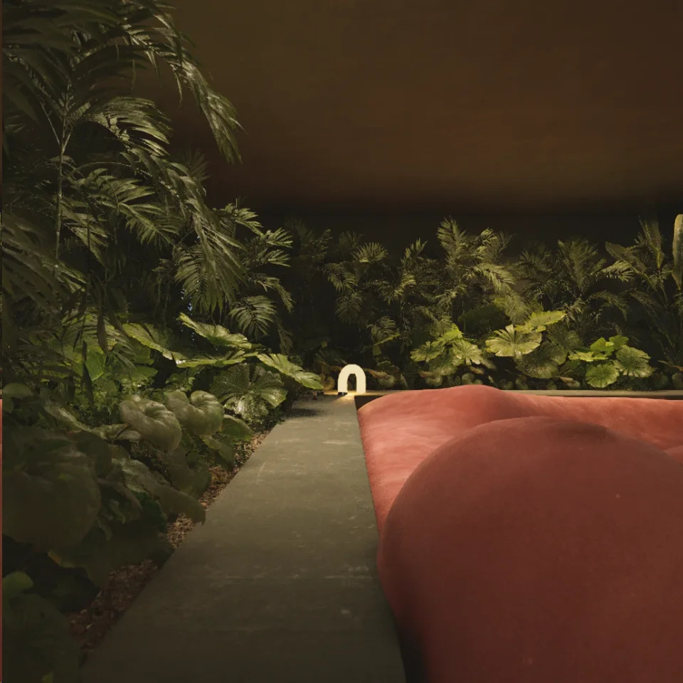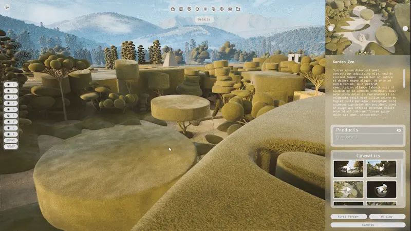Using Unreal Engine’s Lumen technology, we created a real-time lighting system that allows you to visit both interiors and exteriors with different atmospheres, showcasing how changes in lighting influence the architecture, landscape, and sculptures