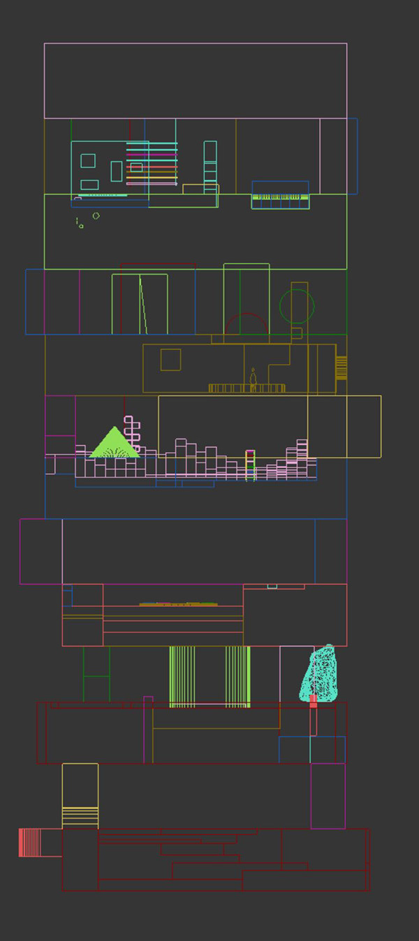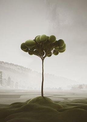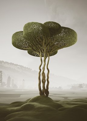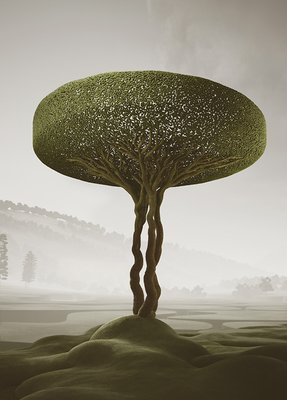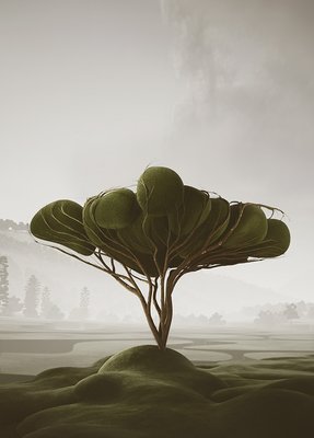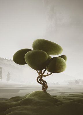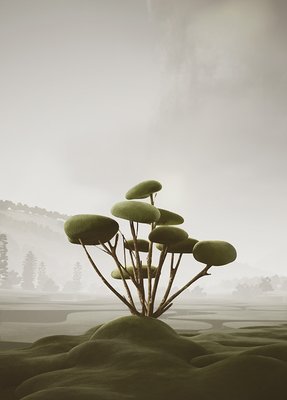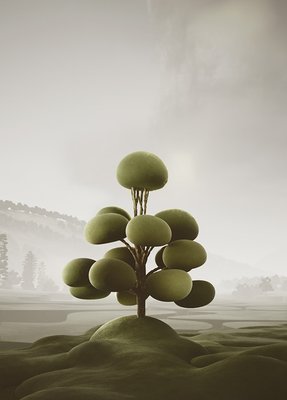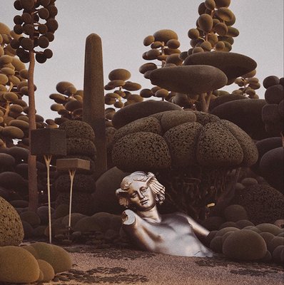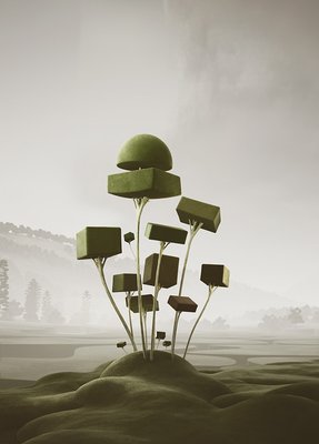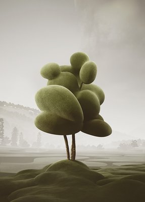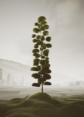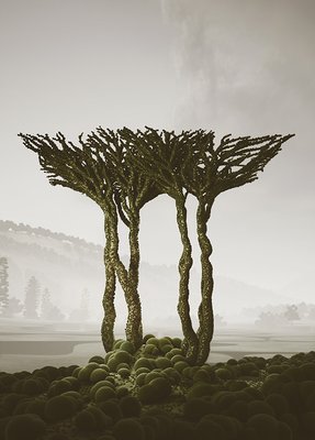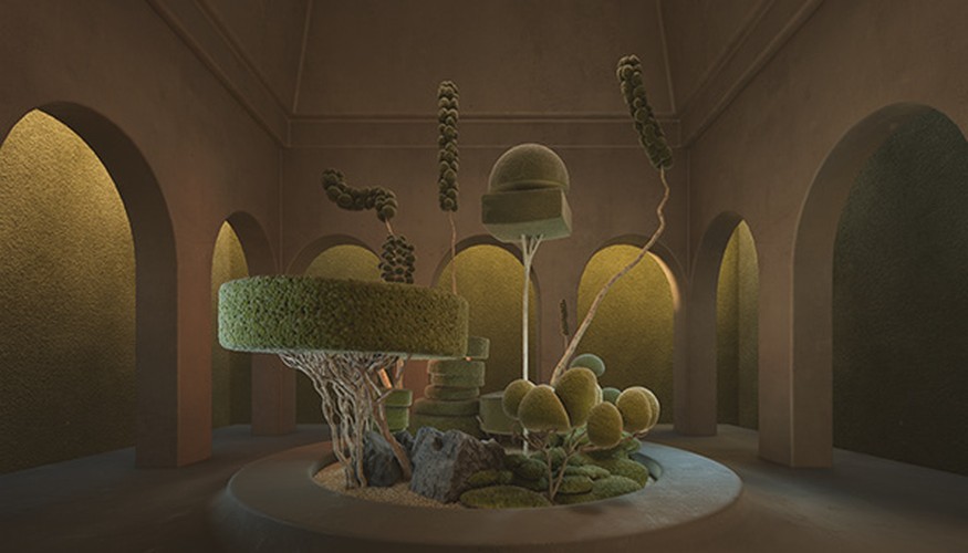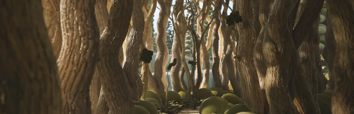 We created our vegetation, drawing inspiration from topiary pruning techniques. Each tree and plant is a sculptural element with a surreal and playful appearance. As we combined and populated them throughout the project, these ‘natural’ spaces, like forests and parks, emerged
